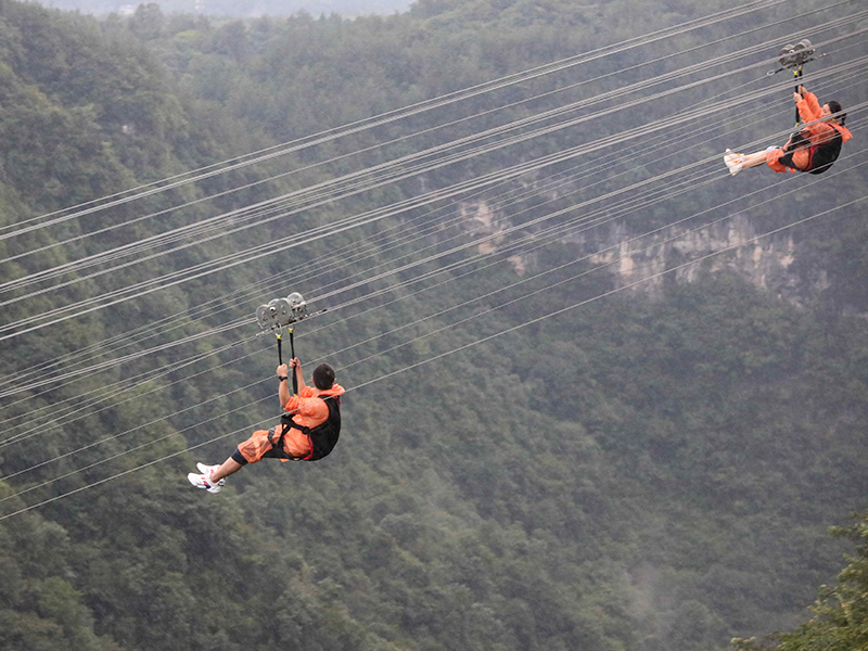 其次,在體驗(yàn)滑索項(xiàng)目時,需要先根據(jù)工作人員的指揮穿戴好各種的防護(hù)工具,之后再按照工作人員的指揮開始體驗(yàn)該項(xiàng)目,該項(xiàng)目的運(yùn)行主要是以鋼絲繩作為主要運(yùn)行軌道,然后乘客掛在軌道上進(jìn)行滑行,而在滑行的過程中,會利用乘客自身的重力來形成慣性從而進(jìn)行滑動。
